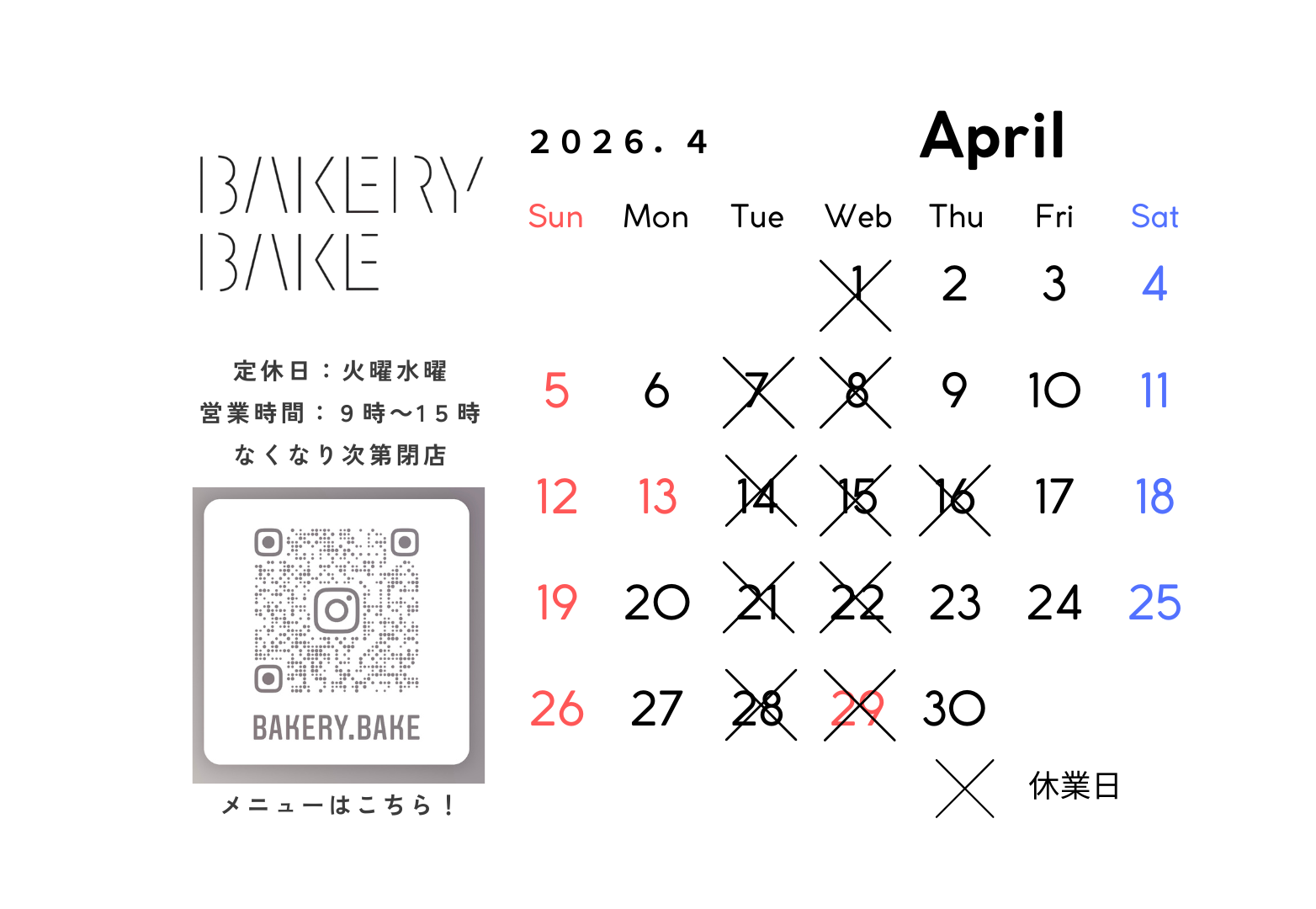 ■定休日 火曜・水曜+4/16木曜 休業日です